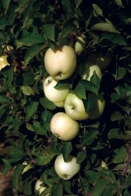 Named for the pale-yellow skin of the fruit that matches the flesh, this apple is crisp, light and sweet. It is great for cooking with & makes the ultimate home-cooked applesauce. Ripens late July to early August & is available in Dwarf size (10’-12’). Needs a pollinator.