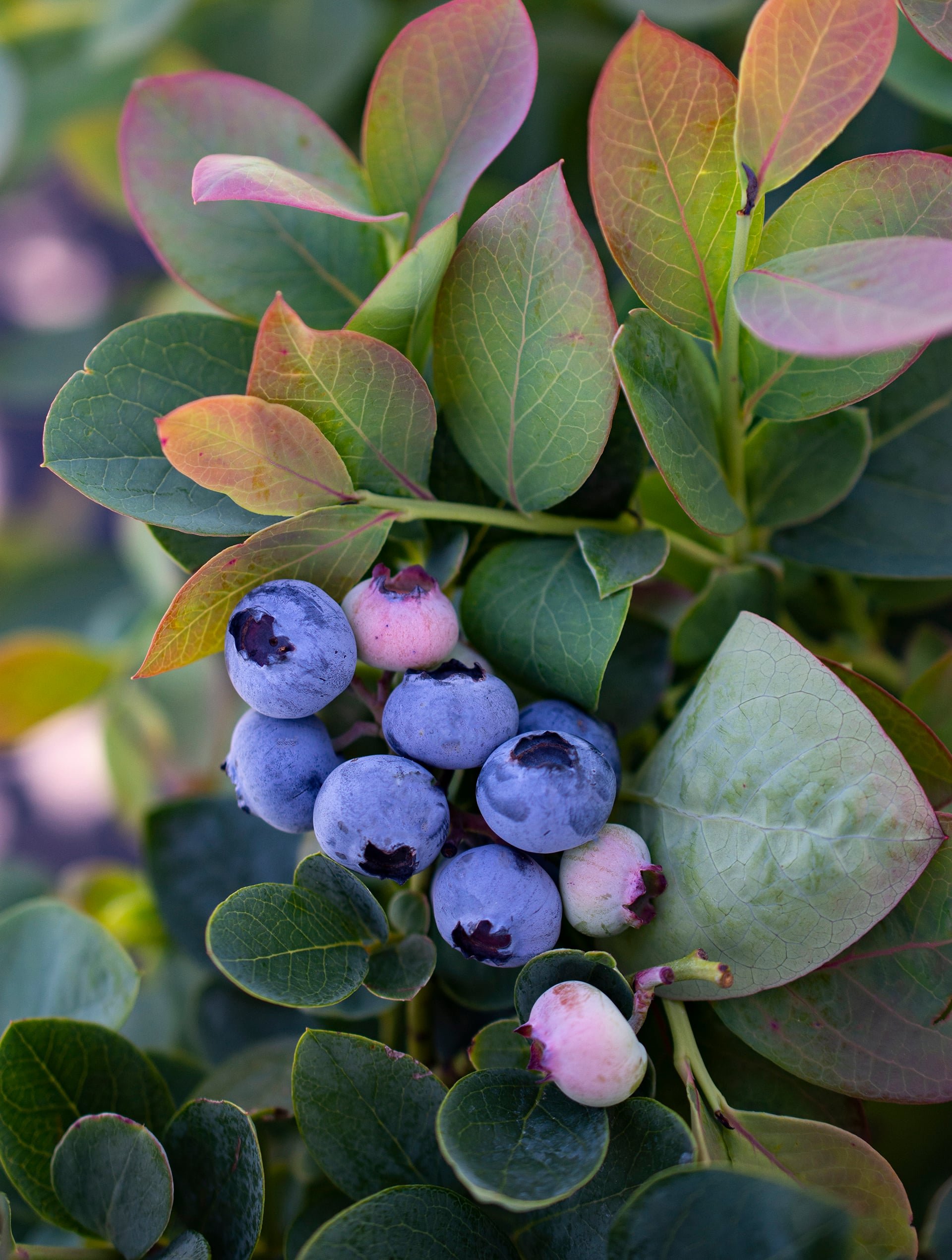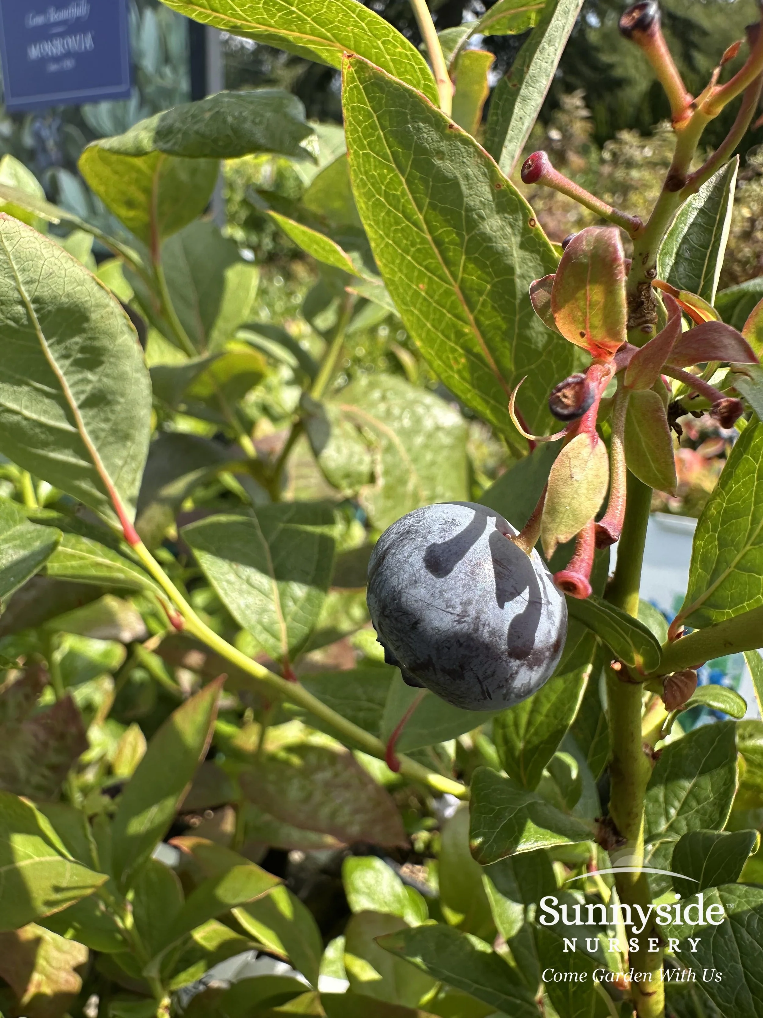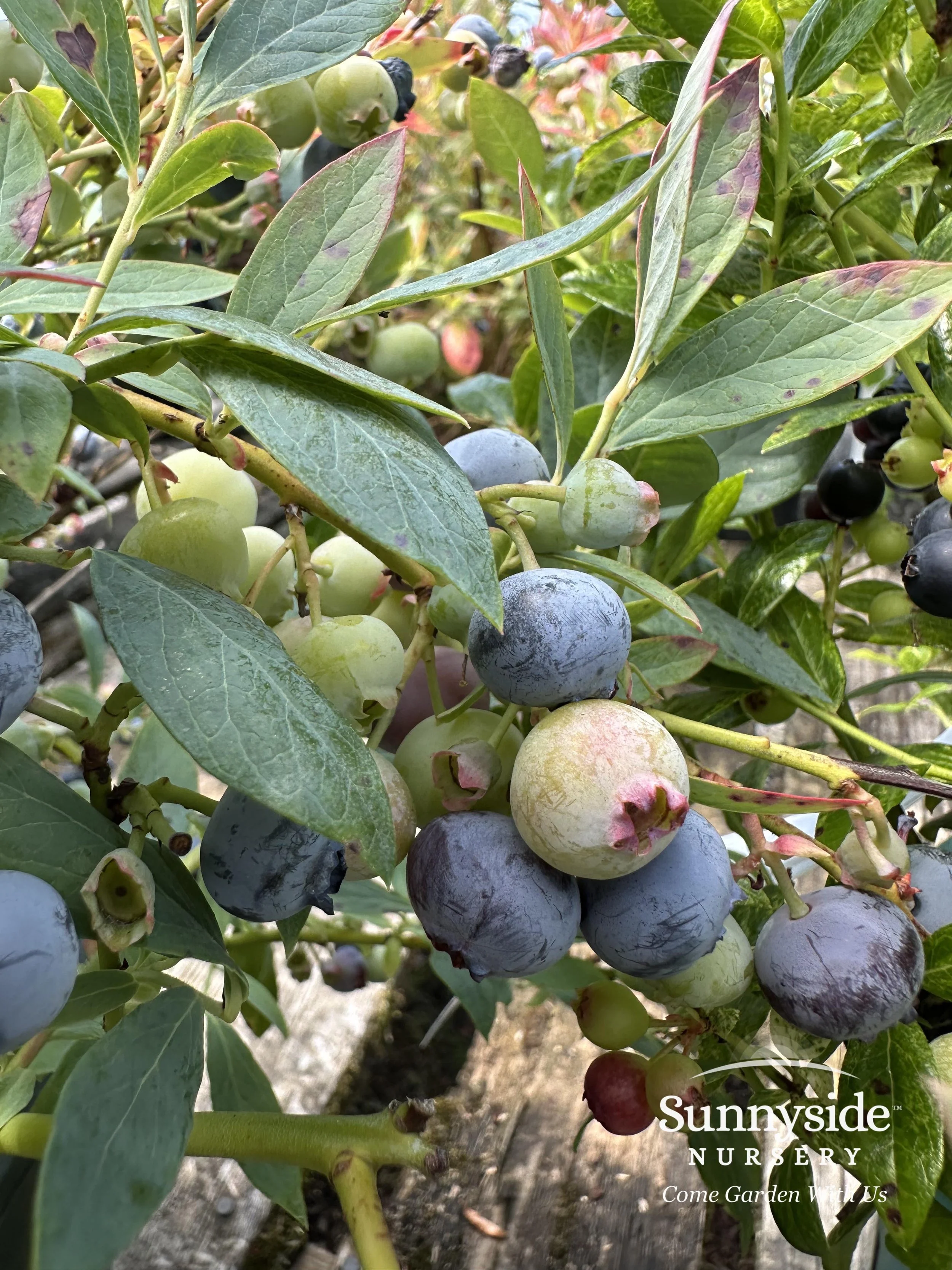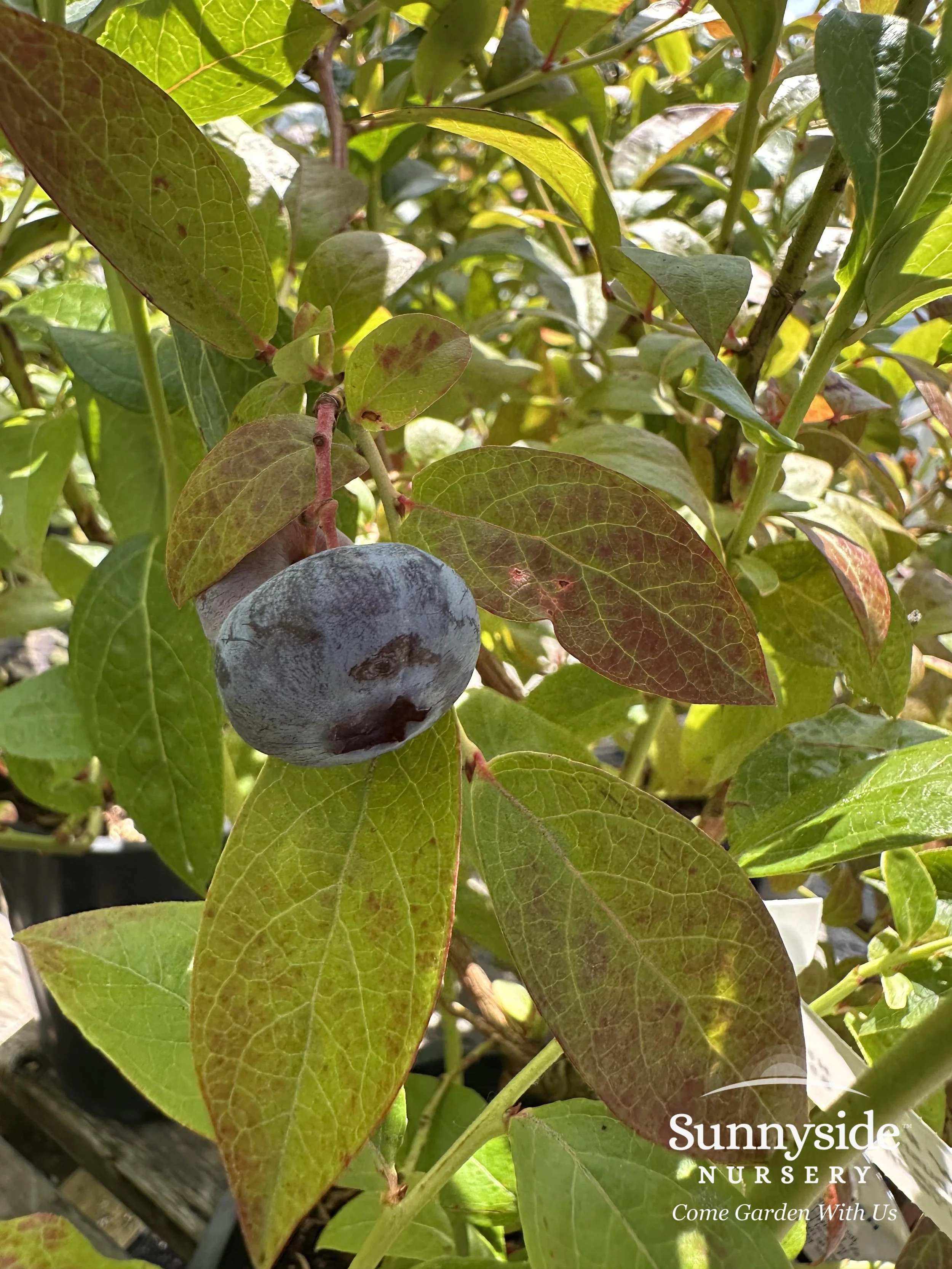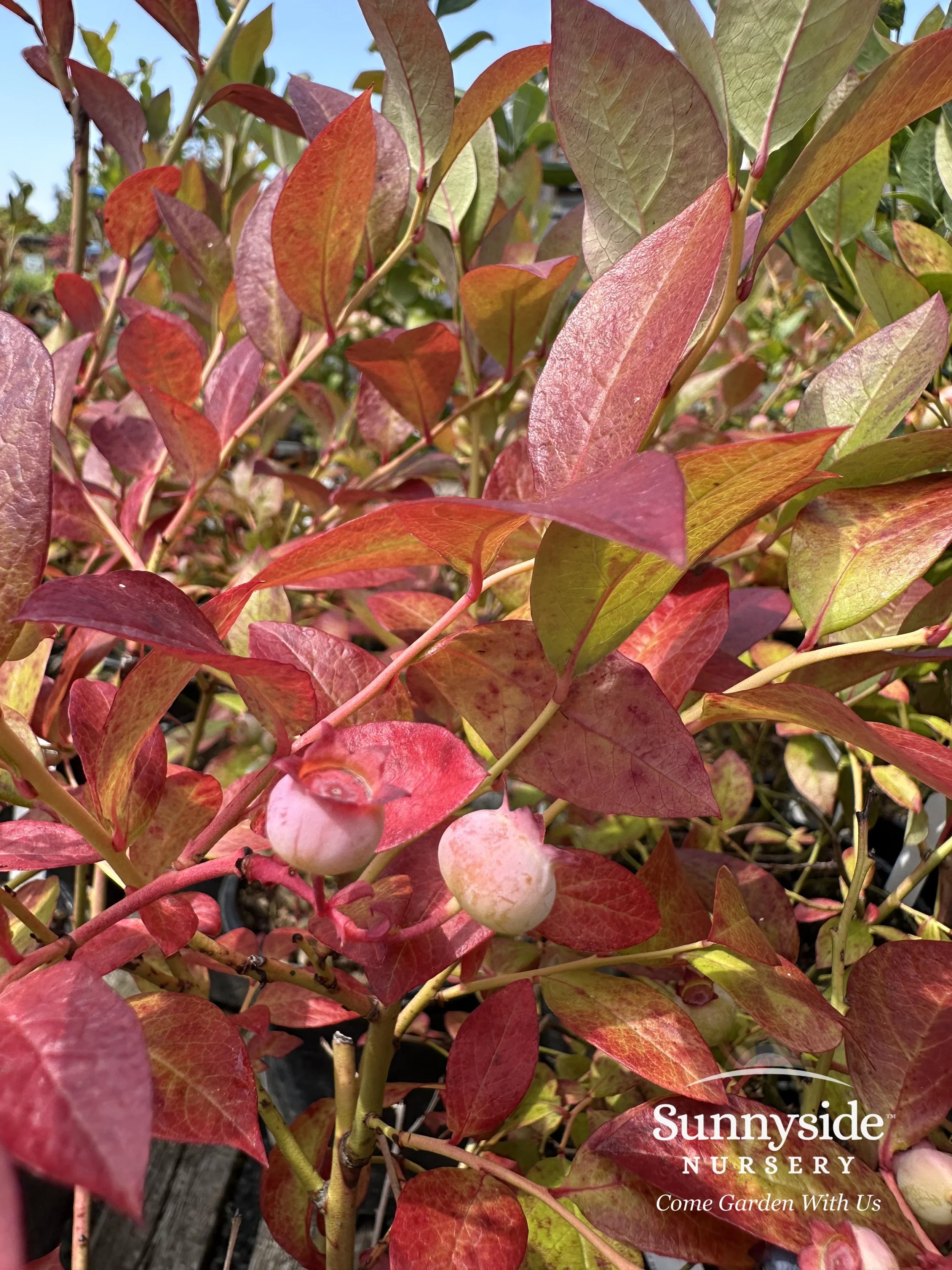 A compact, upright grower that is great in containers. Produces medium-large berries with a smooth, sweet flavor. Has stunning red fall color. Ripens mid season & reaches roughly 3 feet tall.
