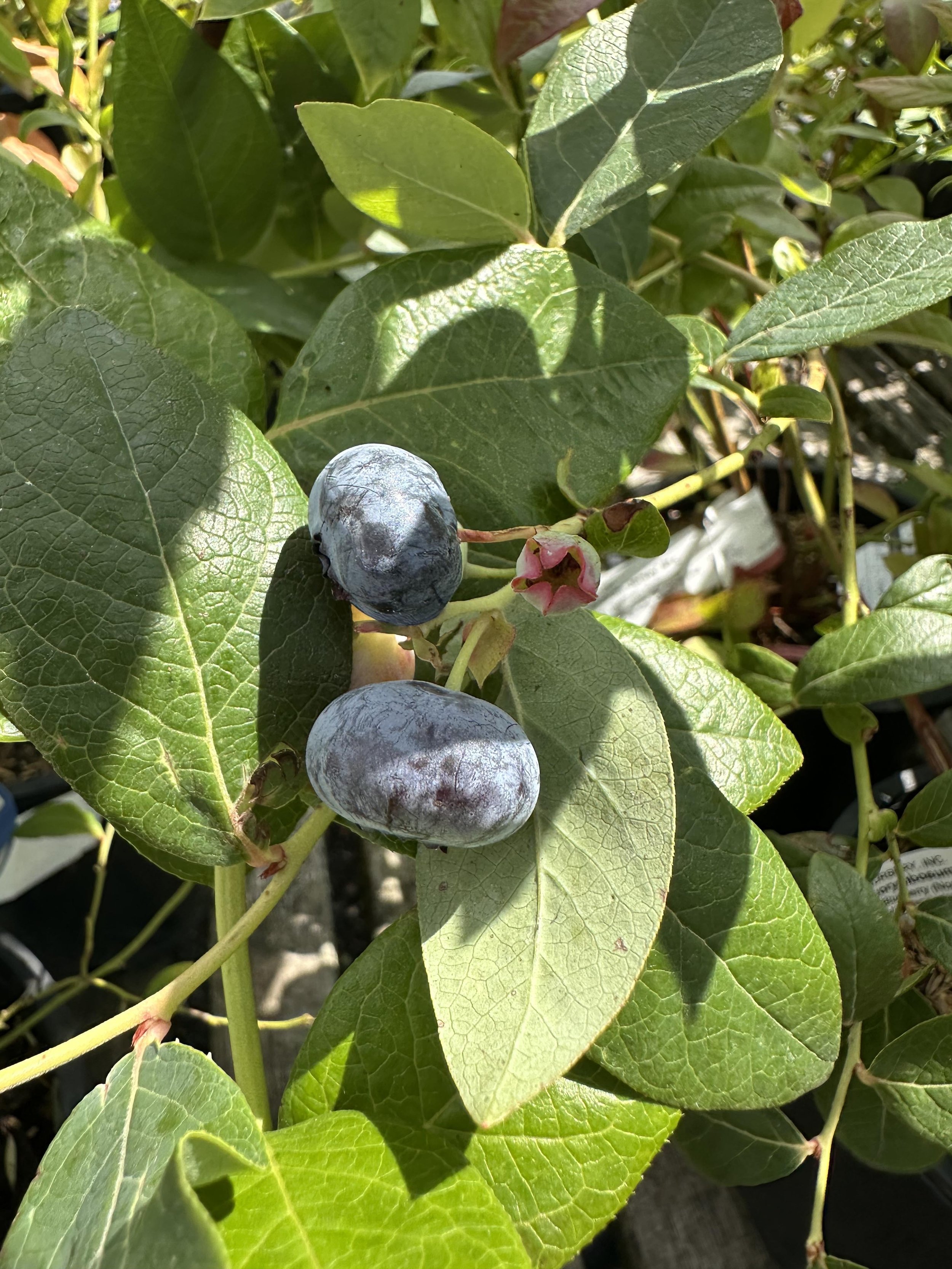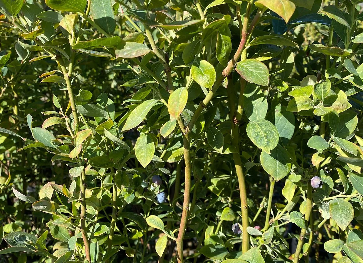 Deep, dark blue berries range from medium to large size & have excellent firmness. A heavy producer of very sweet fruit that have a long shelf-life in the fridge. Ripens early to mid season & reaches roughly 5 feet tall.