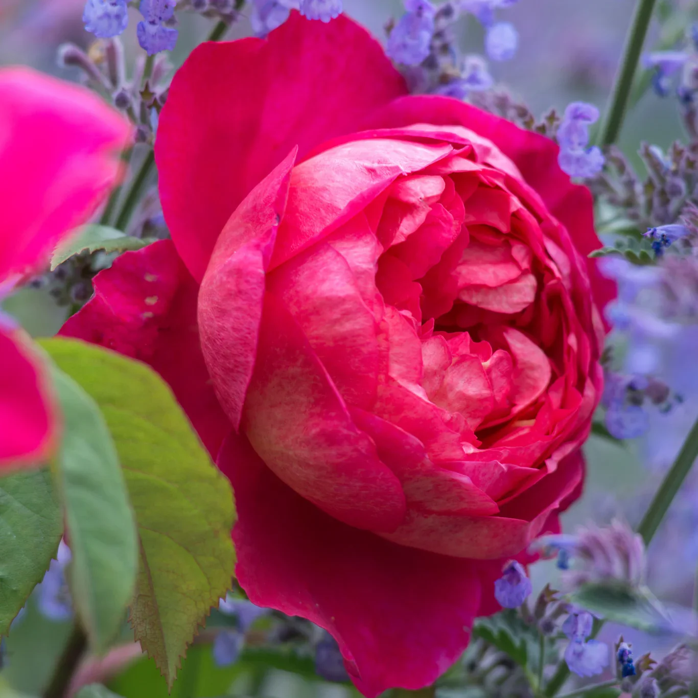 A magnificent variety that has medium sized, many petalled rosette blooms. They are a striking shade of deep pink, the outer petals of each bloom paling slightly over time. The beauty of the blooms is enhanced by a wonderful, strong fruity fragrance. A vigorous rose; it forms a very shapely, broad, rounded shrub with mulberry purple stems and dark green foliage, giving the overall impression of richness and abundance. Disease resistant & an own root plant.