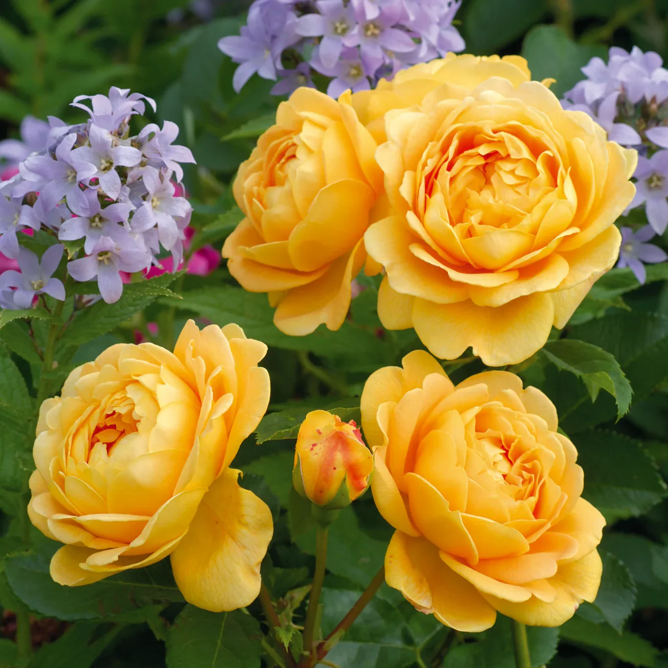 One of the largest-flowered English Roses, bearing rich yellow blooms in the form of giant cups. They have a strong tea fragrance, developing wonderfully combined notes of Sauternes wine and strawberry. It forms a rounded shrub, with ample foliage – the flowers held beautifully poised on long, arching branches. An own root plant.