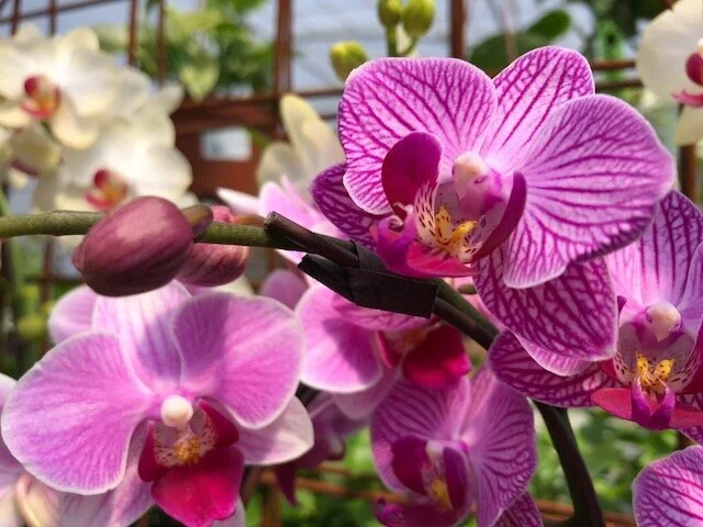 Getting your Phalaenopsis to re-bloom can be a struggle if you keep them in the middle of your home or office. They need the drop in temperature for them to re-bloom. Here in Washington, we can get our Phals’ to re-bloom with minimal effort if you have them in a window that gets cooler with the seasons. Here at the greenhouse (where our temps rarely fall below 70°F) when our Orchids are no longer in bloom we re-pot them (or make them into a Kokedama; we will discuss these next month!) and then place them into our cooler greenhouse (temps about 50°F to 55°F) until they produce their flower spikes. At home, because most of my Phals’ are not in a cool window, I place them in my garage for their cool time; you will need supplemental light if you do not have windows in your garage. Otherwise, any place that can give them a 20°F drop in temp for about a month will work! Don’t let them drop to 40°F or lower for long periods as this can cause severe cold damage. Once you have a flower spike, you can bring them back into their warmer environment where they will continue to flower for you for weeks (maybe even months!)