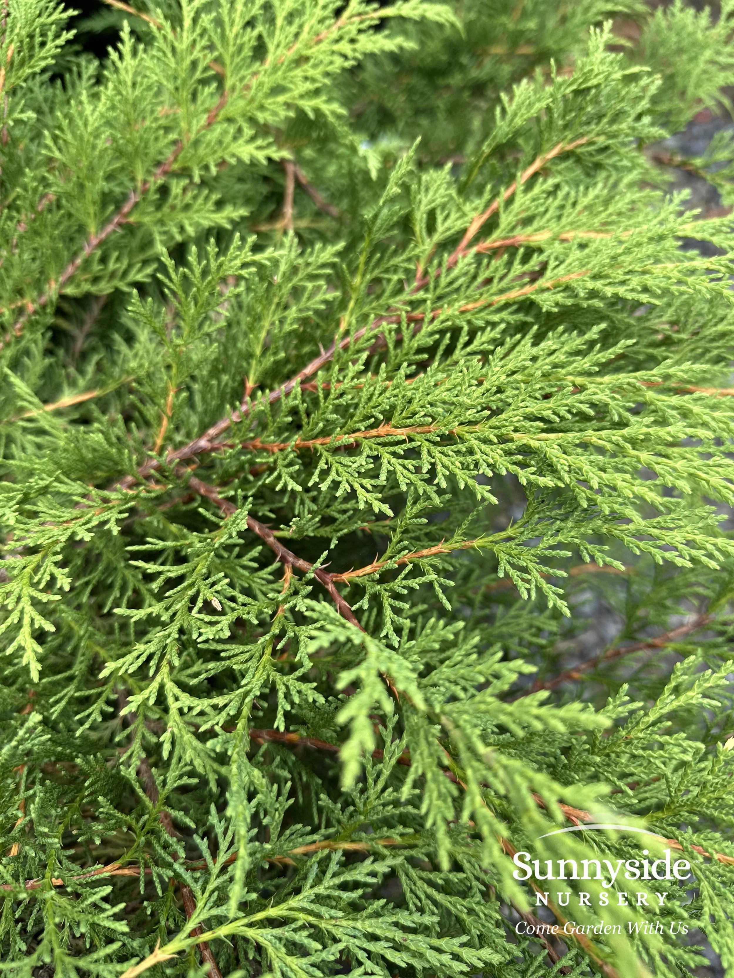 Soft feathery scale-like foliage cover this low, spreading variety. The flattened sprays are a bright green in summer, turning a bronze-purple in fall through winter. Works well as a juniper substitute. Native to Russia, it is very hardy. Best in full sun but will tolerate partial shade. Requires very well-drained soil. Has a spreading growth habit & reaches roughly 2’ tall by 10’ wide in size, growing 6” to 8” a year.