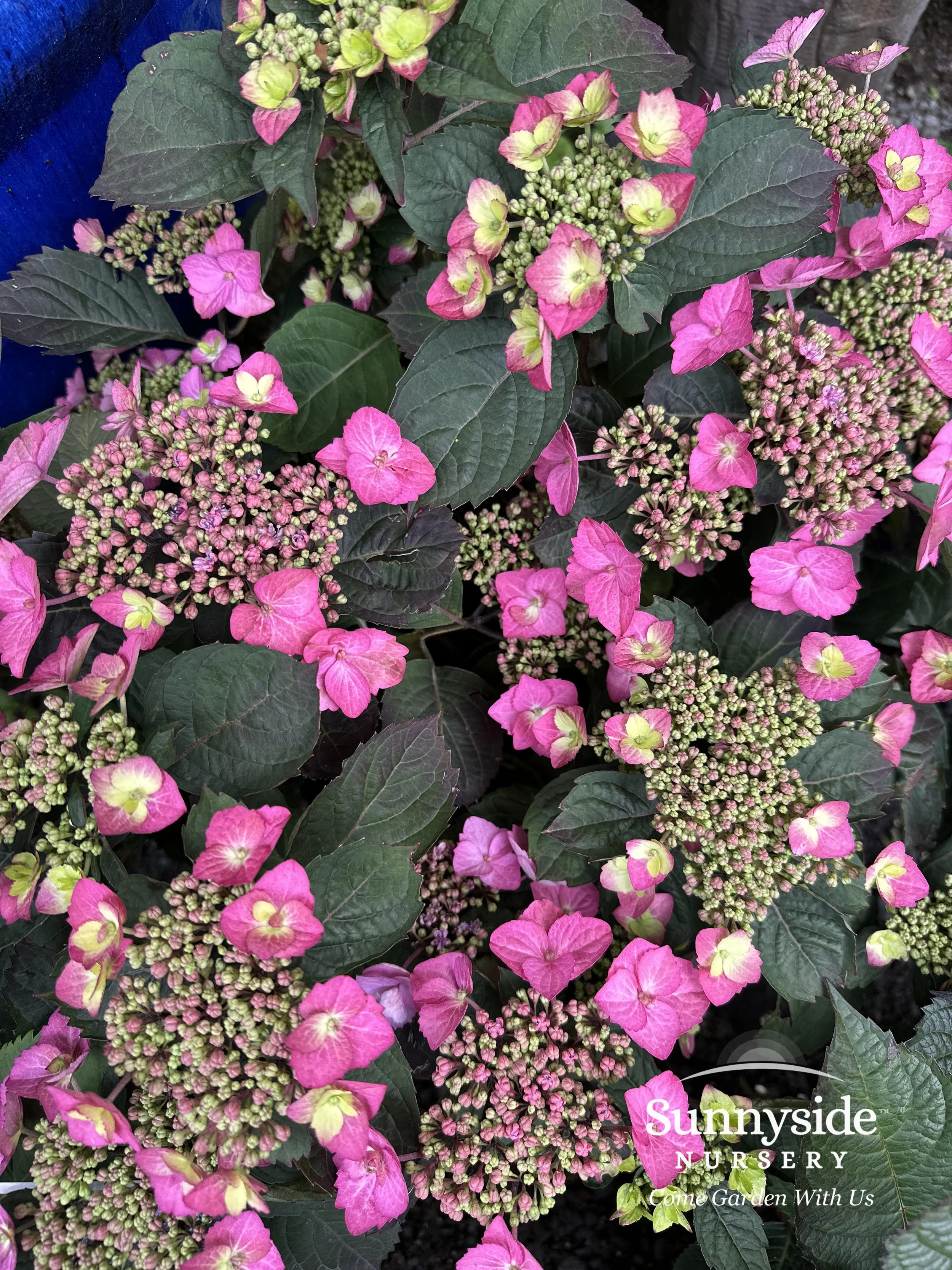 Vibrant, hot pink lacecap flowers contrasted beautifully with glossy black foliage, creating an eye-catching experience. Blooms in the summer, is a repeat bloomer & reaches roughly 3 feet tall by 3 feet wide.