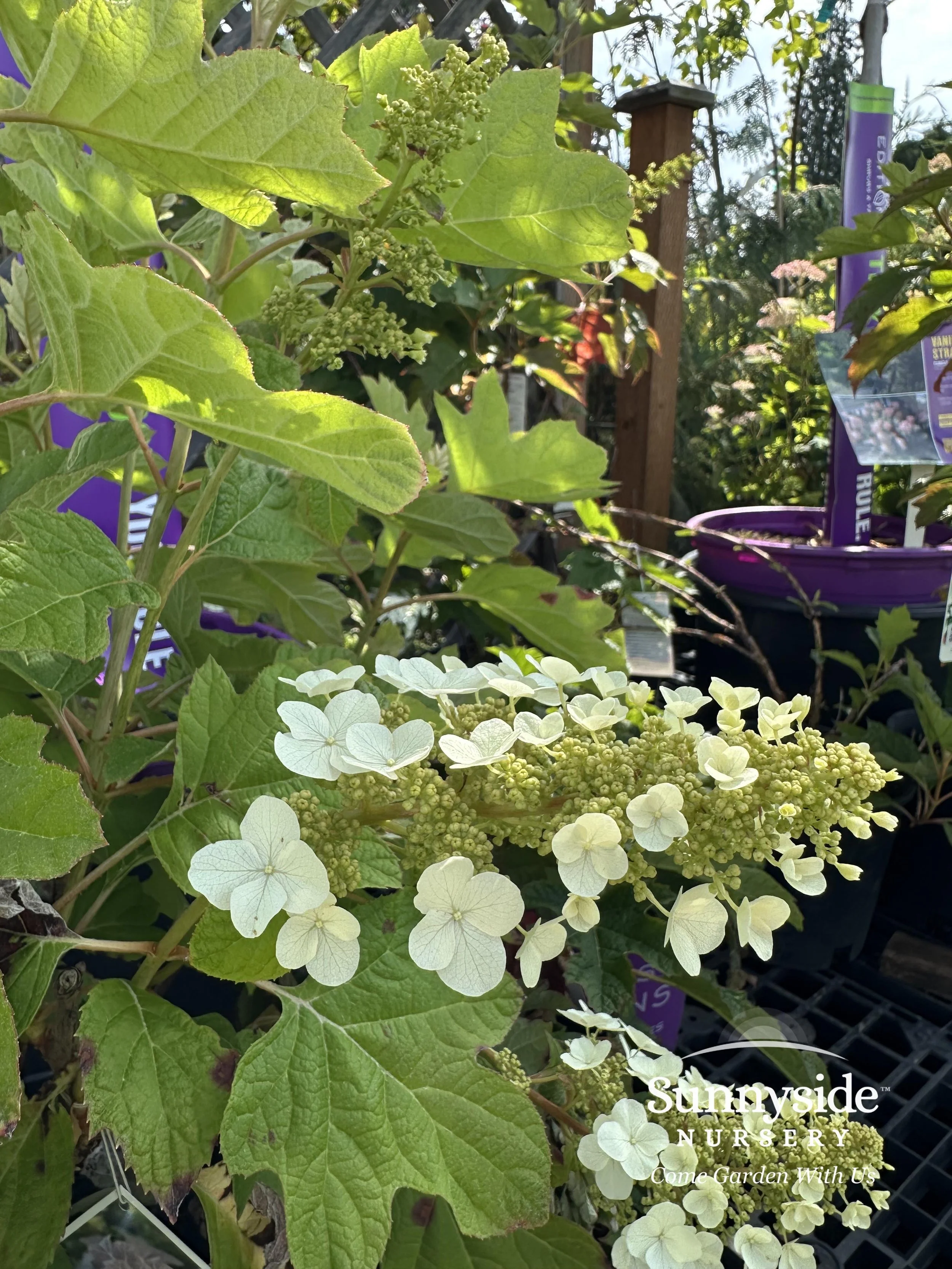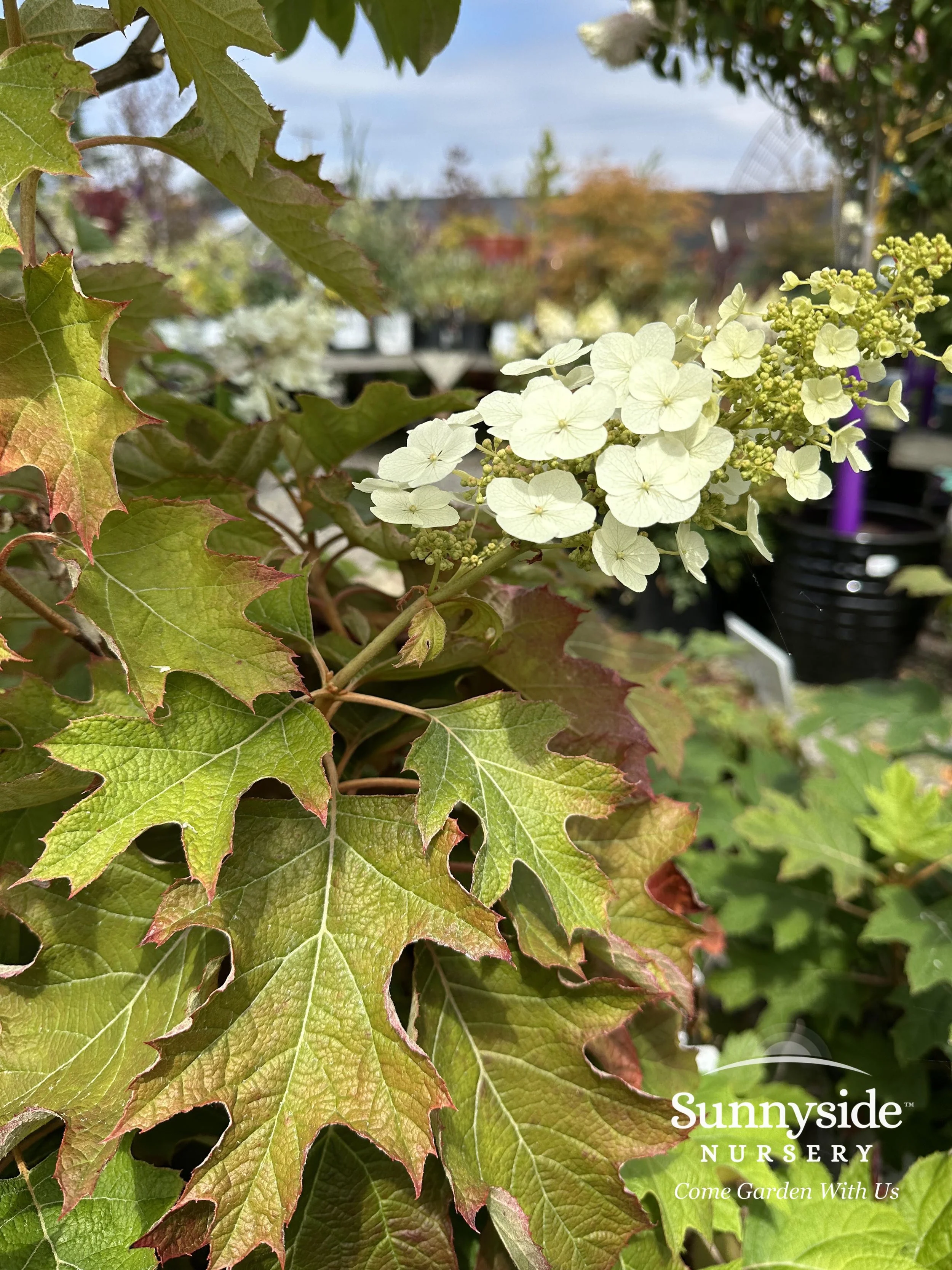 Enjoy a profusion of robust flower clusters that open white and age to pink, remaining upright even after heavy rain. Dark green, deeply lobed oak-like foliage turns brilliant mahogany in fall. Compact and well-suited for smaller landscapes, in groups, or as a hedge. Blooms in summer & reaches roughly 4 feet tall by 4 feet wide in size.