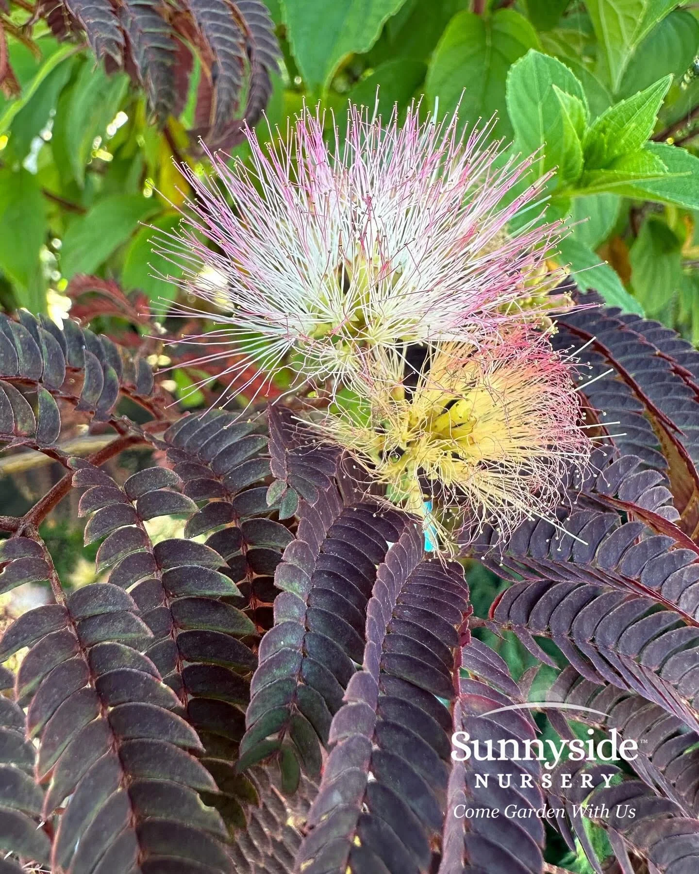 Also commonly known as a Mimosa Tree, it is versatile & colorful with a striking, multi-trunk form & dark green or chocolate, fern-textured foliage. Large, cherry-pink, powder-puff-shaped, fragrant flowers appear profusely in the summer - even on young trees. Loves tropical & subtropical climates & creates an exotic umbrella of dappled shade. A slow & steady grower that requires full sun & reaches roughly 25 feet tall by 25 feet wide in size.