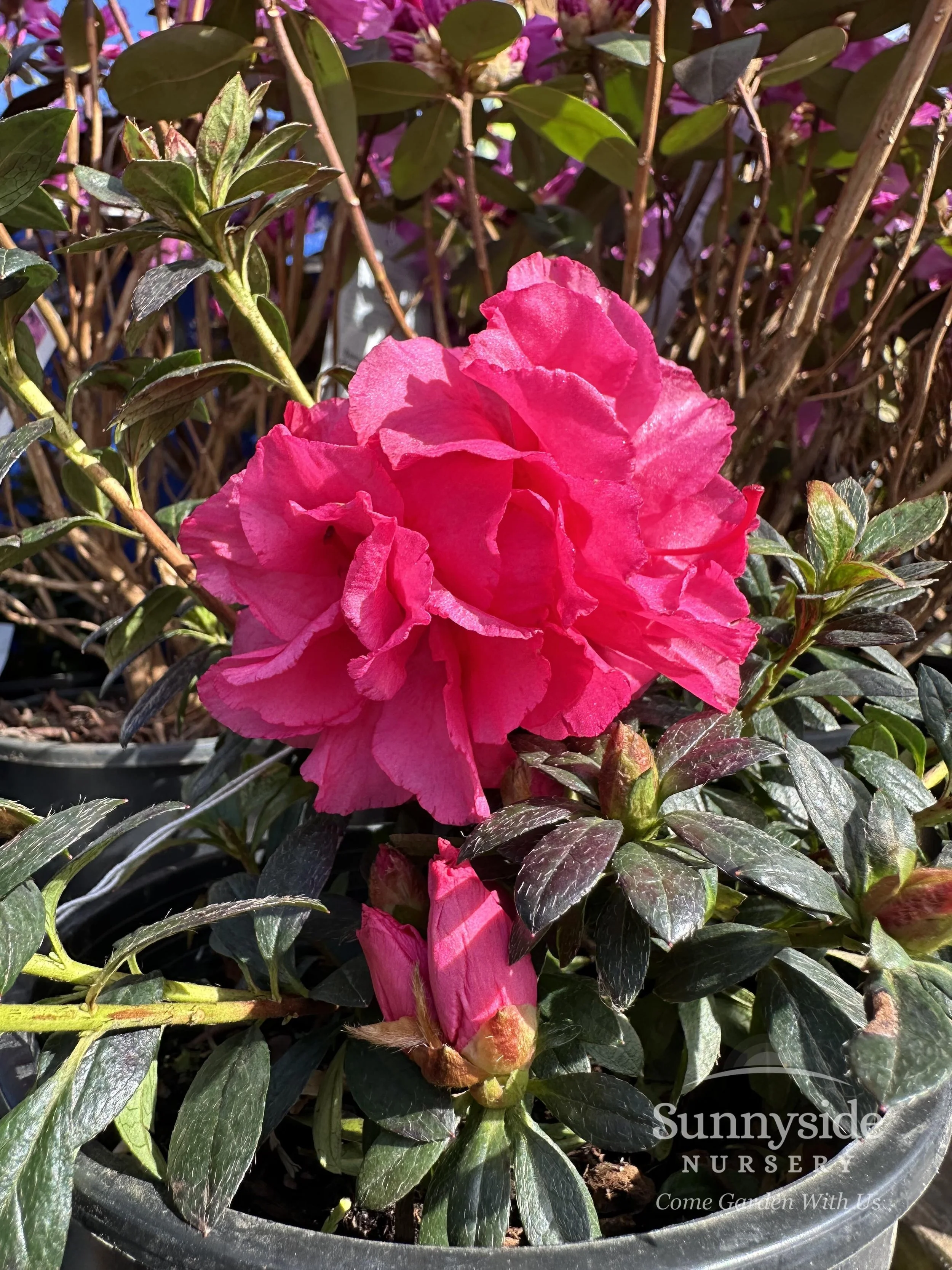 This showy, hardy azalea thrives, despite chilling winters! Produces beautiful large, rose-pink, single flowers complimented by eye-catching variegated foliage. Plant en masse for an impressive color display. Blooms mid spring & reaches roughly 3-feet tall by 3-feet wide in size. Evergreen.