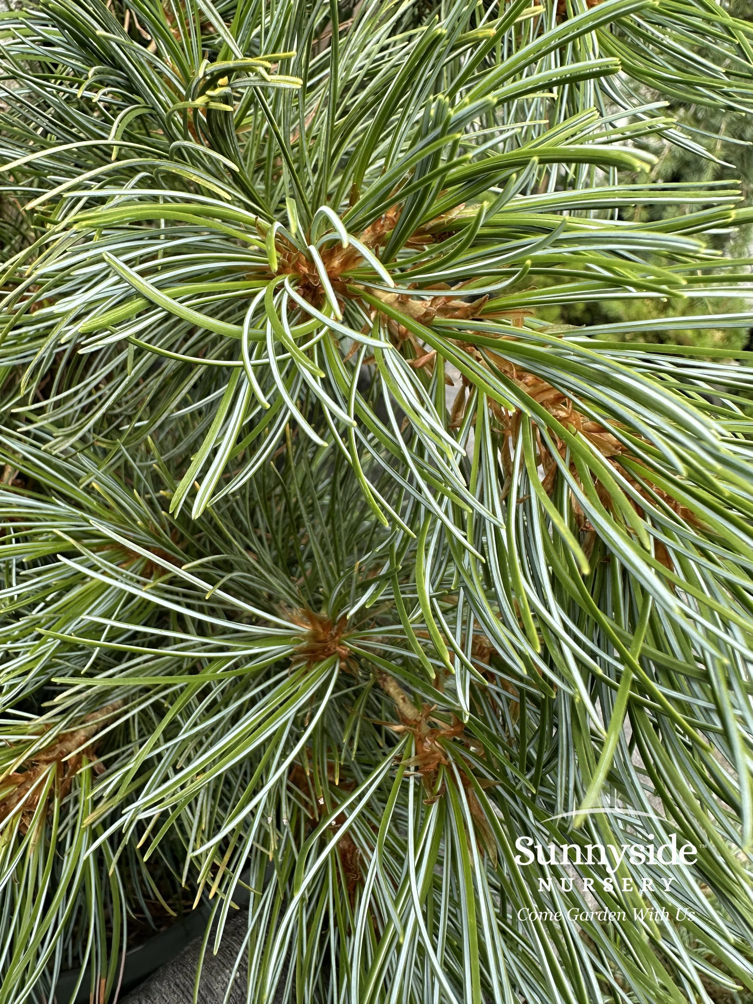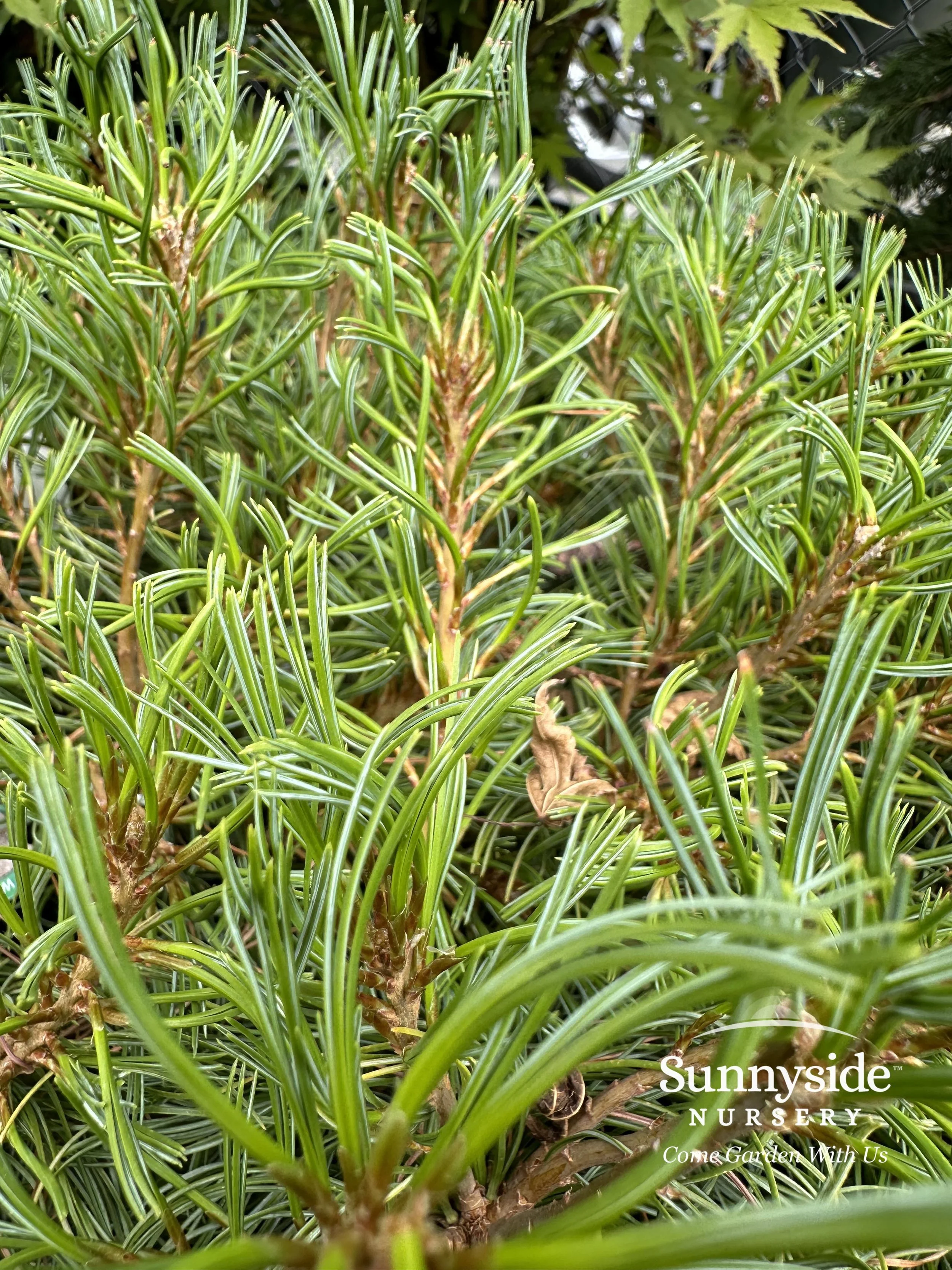 Silvery blue on one side, green on the other, the long-enduring, straight needles give the naturally sculpted, upright tree a lush look. Sturdy branches display attractive silver-grey bark and loads of small cones. The slender architectural tree makes a dramatic feature and contributes an Asian aesthetic to the landscape. Provide full sun and good drainage. Has a narrow upright habit & reaches roughly 15’ tall by 8’ wide in size, growing 6” to 12” a year.