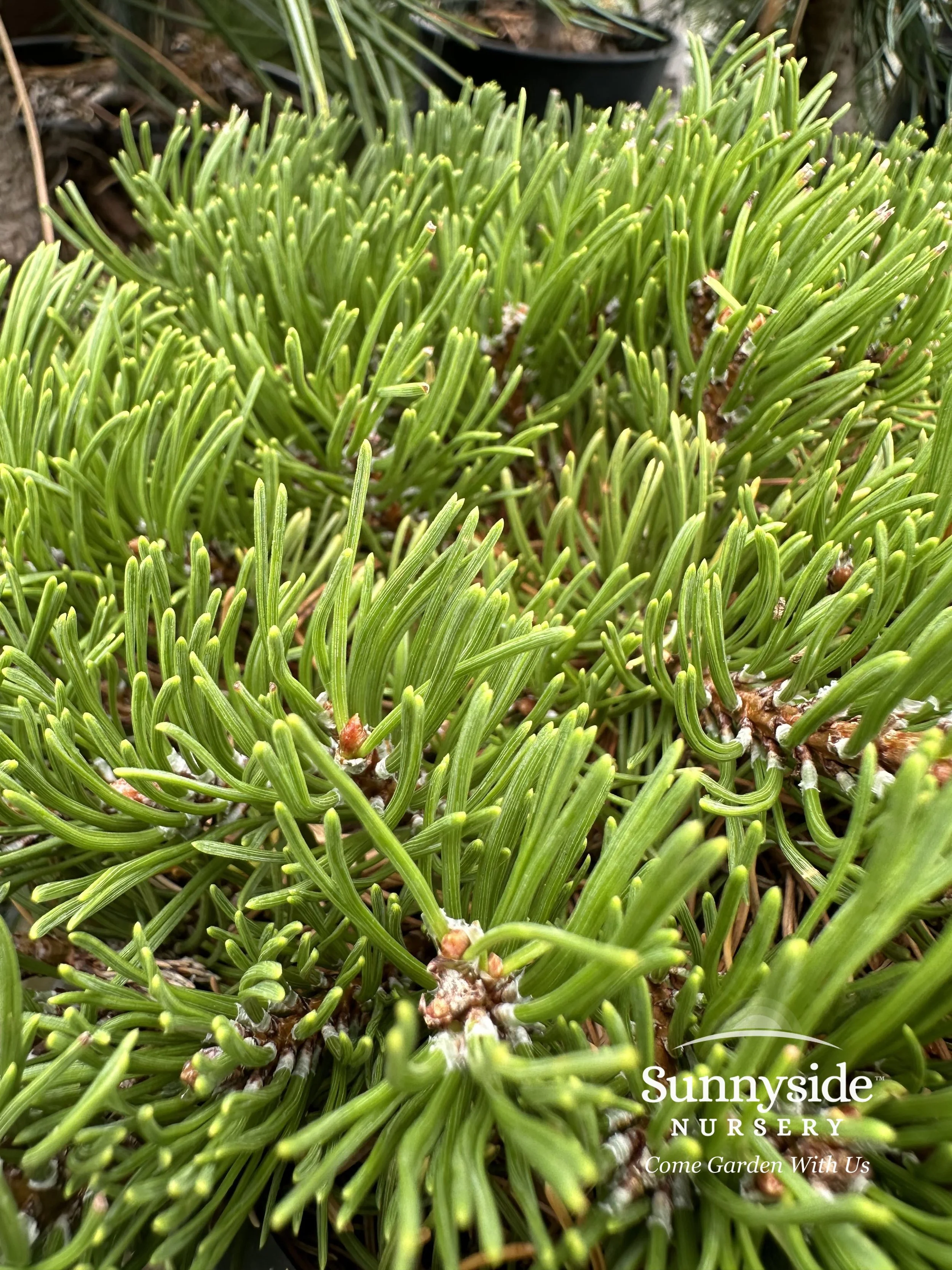 An exciting addition to the TRUdwarf collection of mugo pines from Iseli Nursery, Pesto® has a unique spreading habit. Its vibrant green needles contrast strongly with its attractive brownish purple buds. Maintaining its ground-hugging form with minimal or no pruning, it provides the gardener with a low maintenance choice. Extremely adaptable & hardy, Pesto’s® consistency, reliability, & attractiveness make it an excellent choice for many areas. Has a spreading growth habit & reaches roughly 10” tall by 18” wide in size, growing 1” to 3” a year.