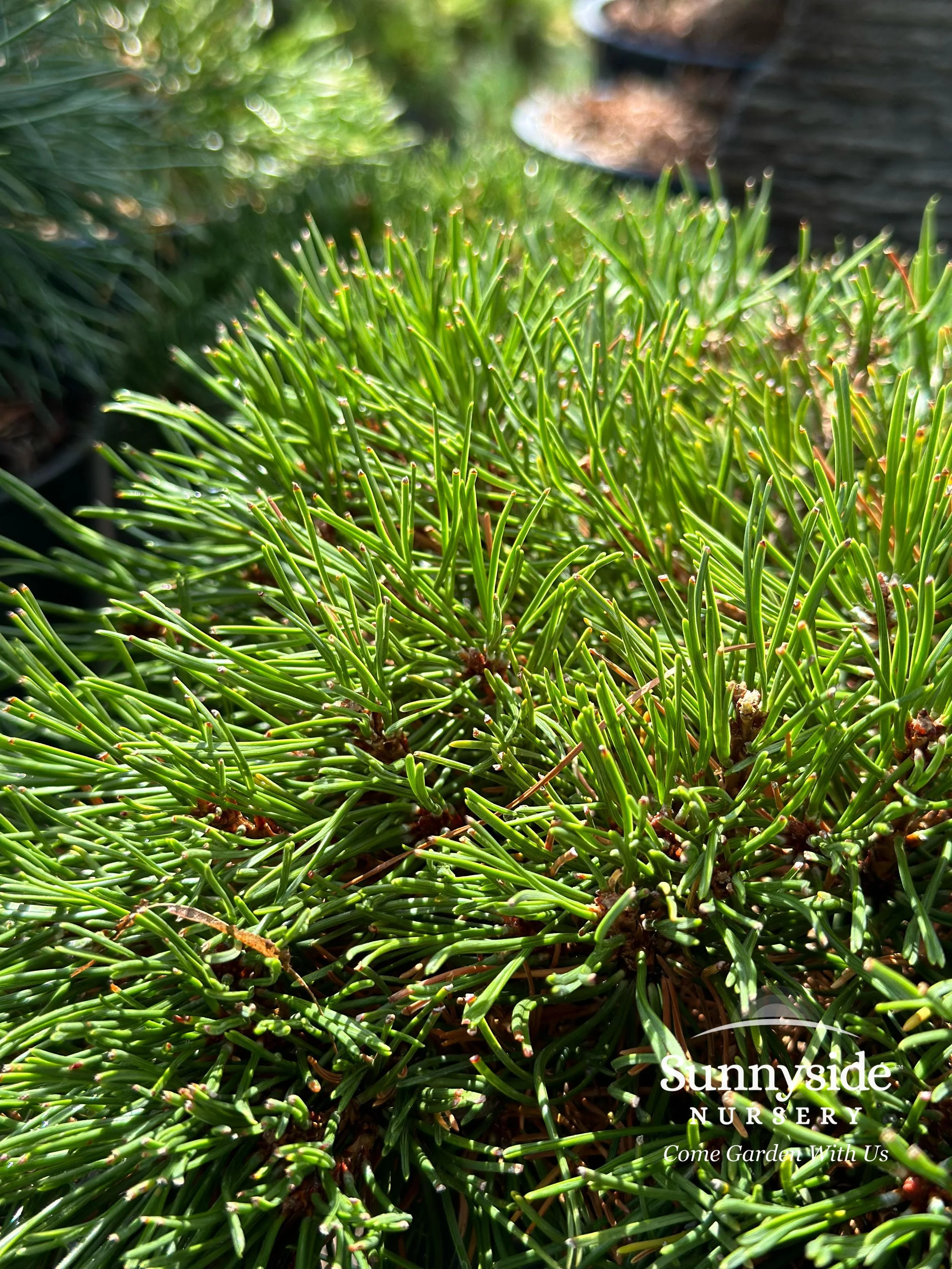 The short, thick, bright green needles of this vibrant, dwarf Japanese Red Pine keep their color all year long. They grow densely along stout horizontal branches that give the unusual pine a flat-topped, low-growing habit. Prominent tan buds add interest. Has a globe shaped habit & reaches roughly 4’ tall by 6’ wide in size, growing 3” to 6” a year.