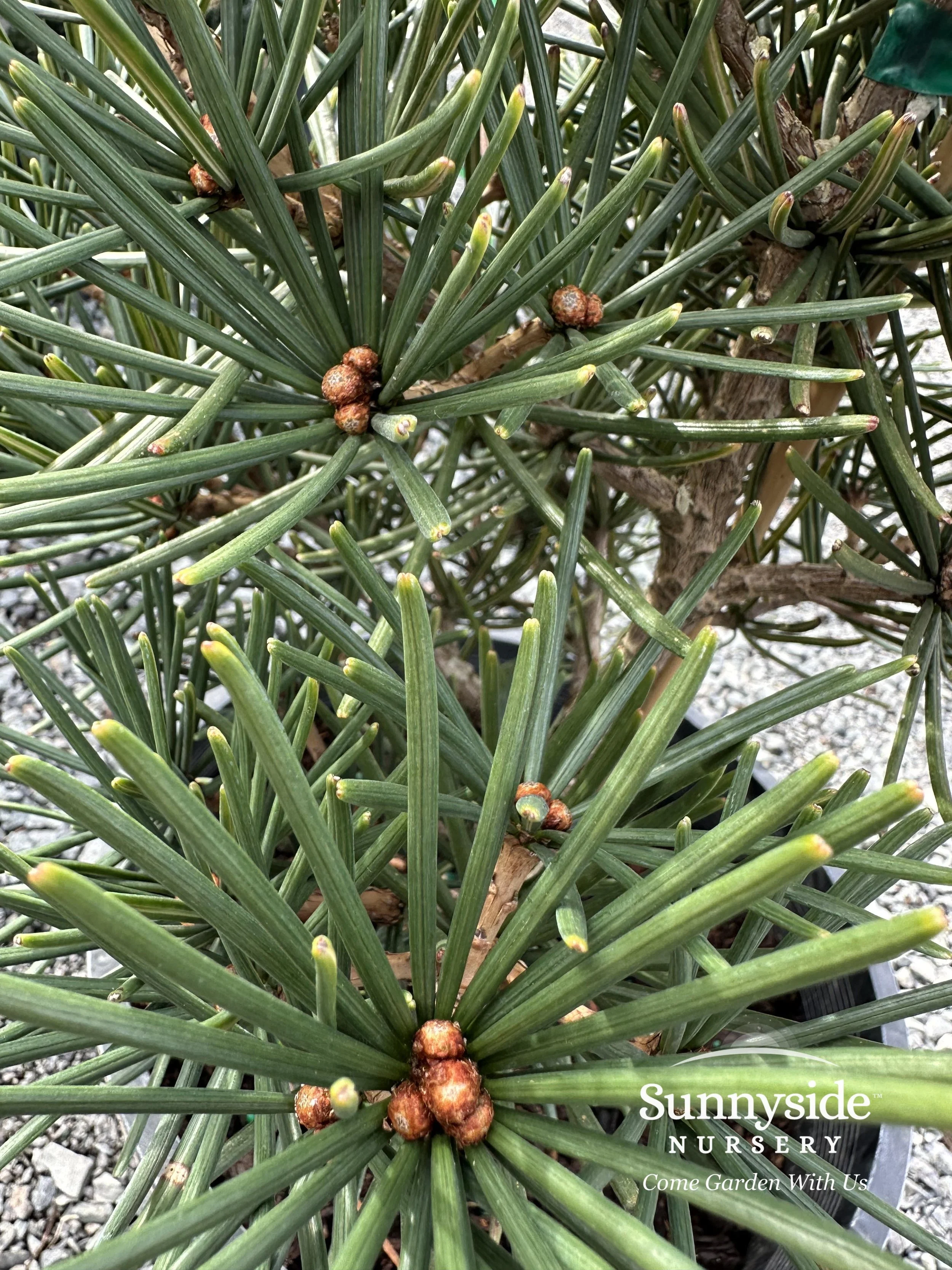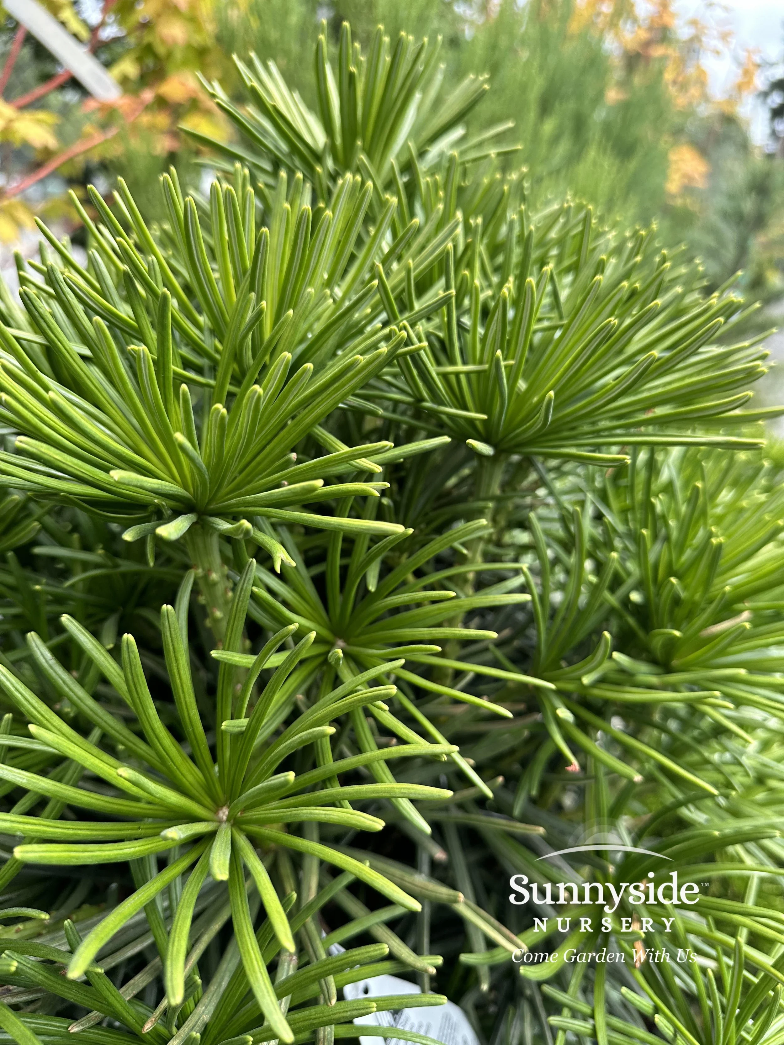 Glossy green needles are relatively thin & arch with a bit of a twist to remind us of a plane propeller. A medium-sized tree with compact growth, it maintains a solid green all year around. Originating