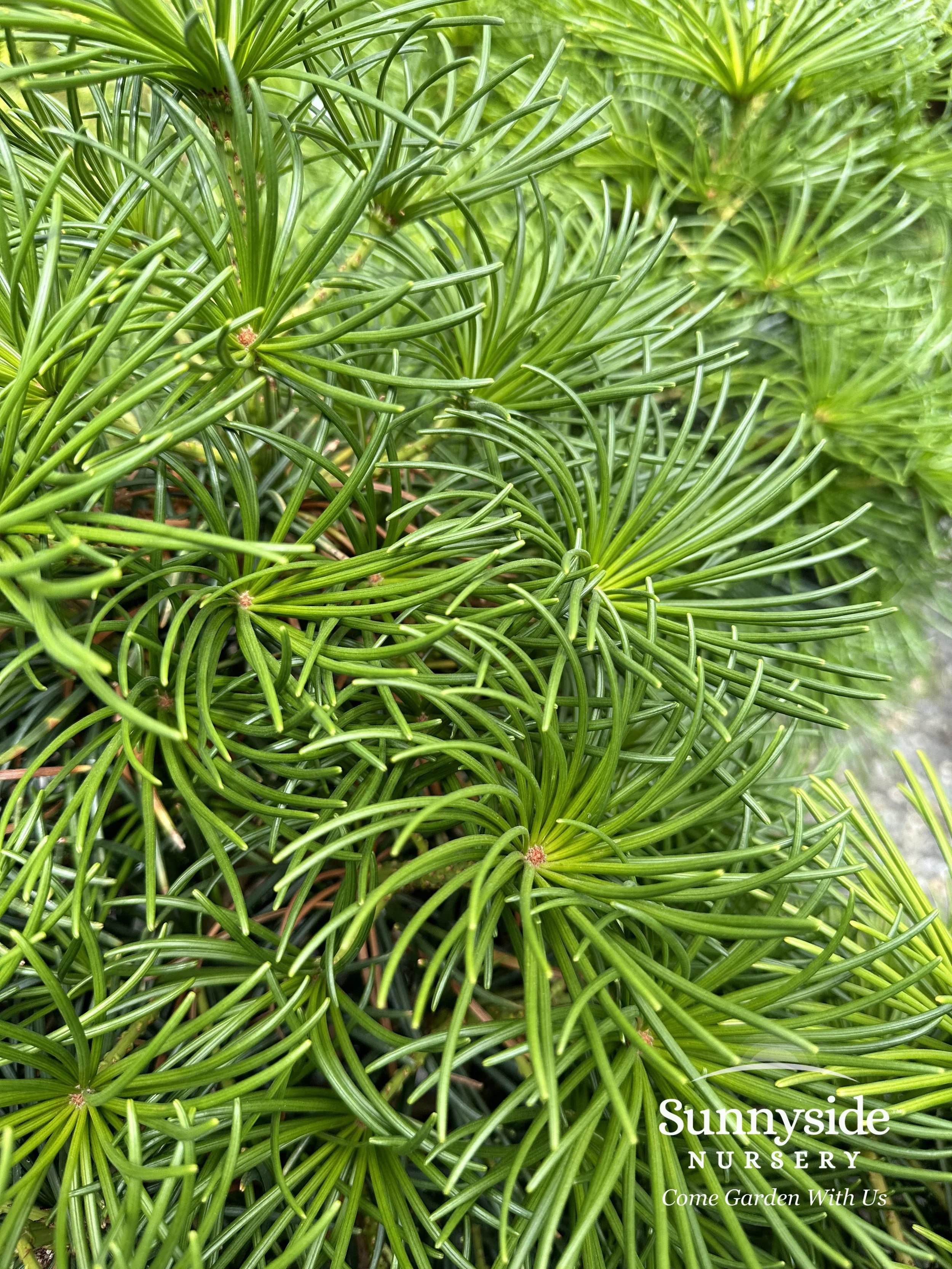 Dense & compact Japanese Umbrella Pine that is slow growing & perfect for the patio garden. Shorter, thinner needles on short shoots account for an overall bushy habit. Has a very dark green, resulting in a very rich look. Full sun to partial shade and well drained soil is preferred. Has a broad upright growth habit & reaches roughly 4’ tall by 3’ wide in size, growing 3” to 5” a year.