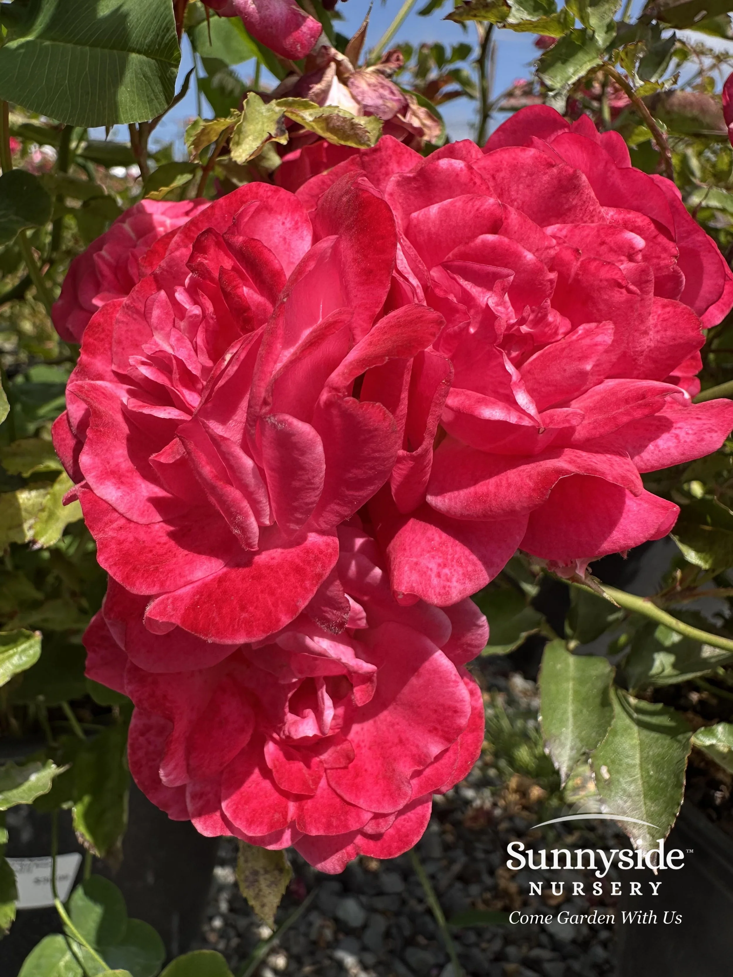 Has a classic red color with a slight tea scent. A touch of lighter pink reverse light up the show of this blooming 'machine'. Excellent vigor, naturally self-maintained habit & disease resistant. An own root plant.