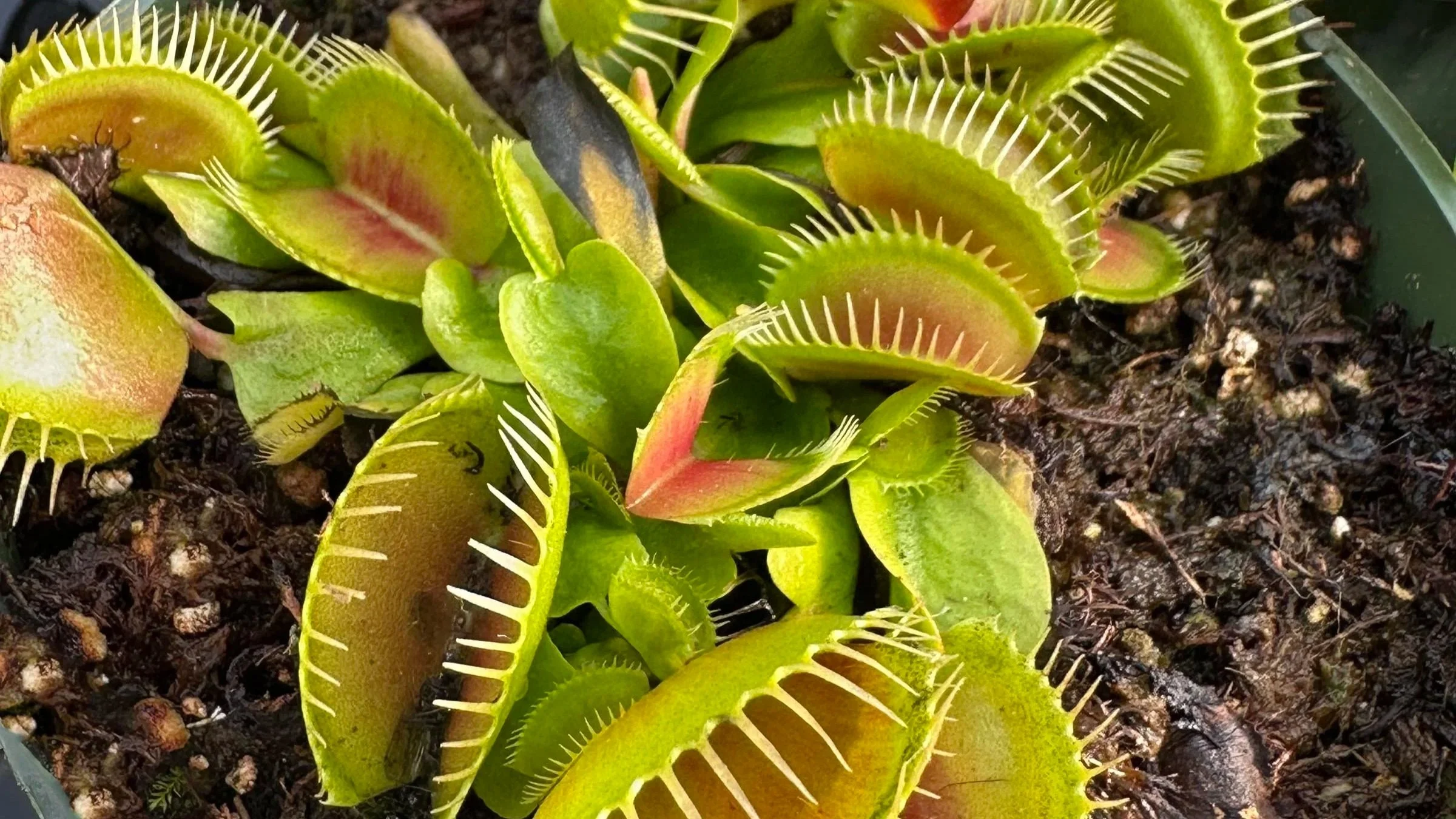 The countless spiny cacti and succulents for indoors are equally appealing, although appreciating them from a distance may be prudent. Fun and easy to grow varieties of Spider Plants (Chlorophytum sp.) and Snake Plants (Sansevieria sp.) offer even more festive options. I would also mention carnivorous plants here, and many can honestly be grown indoors or outdoors in our area. If you are looking for blood, Pitcher Plants (Sarracenia sp.), Venus Flytraps (Dionaea sp.), Cobra Lilies (Darlingtonia sp.) and many others can be found. Nothing speaks Halloween more than watching your plant snap shut on a hapless little fly, and then the slow devouring of proteins begins. How delicious indeed. Here are some more fun houseplants to seek out at your local garden center or houseplant shop…