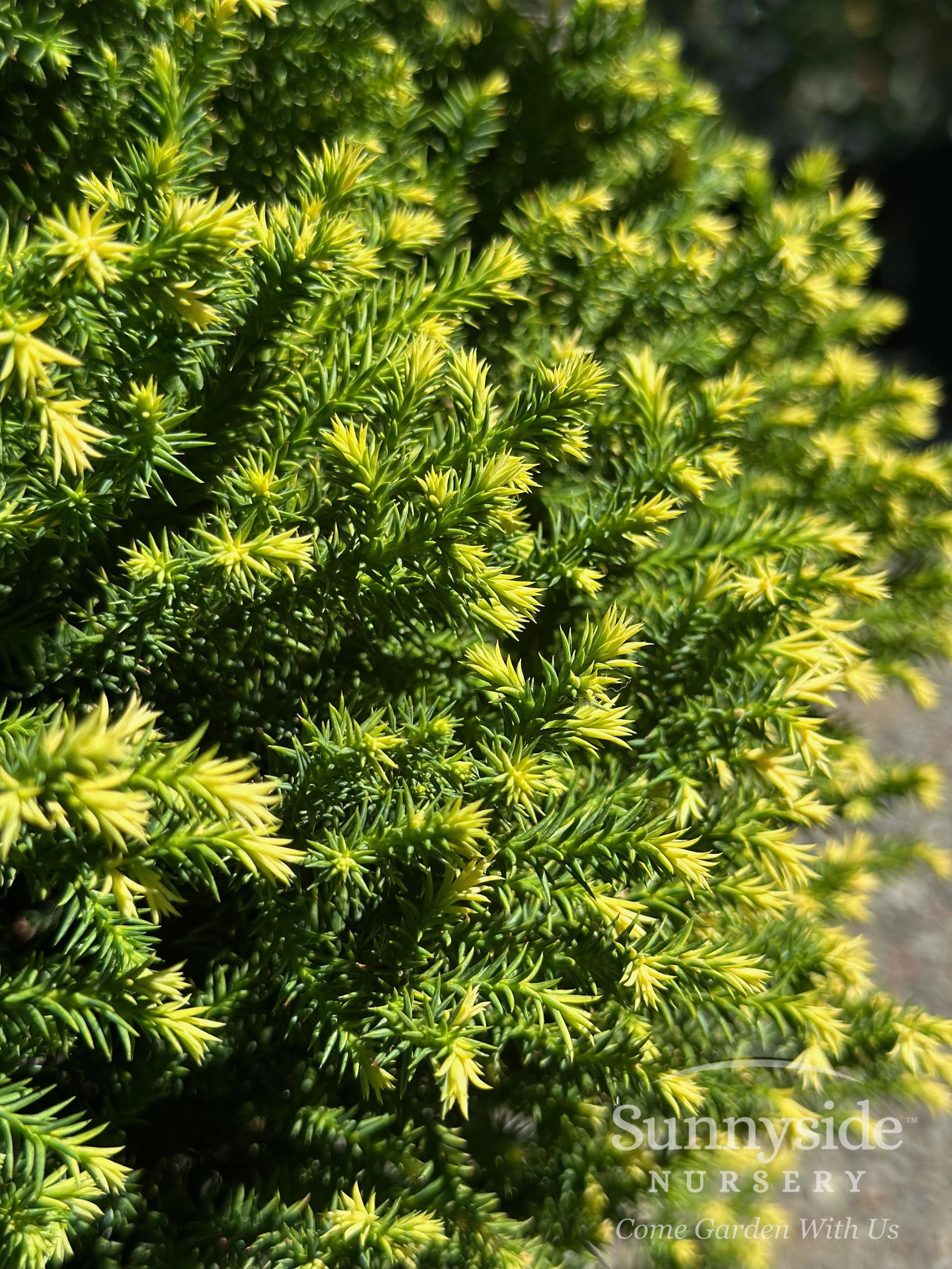 Some folks may think yellowy plants look like they need food, and perhaps with some I might agree. But the vast majority of yellow variegated conifers do not and instead offer brighter cultivar options versus more green. Many of the species sporting yellow and/or white foliage do not need full sun, if fact they get a little tired and/or tip-burned in full sun in our warm summers. The trick is finding the perfect spot to maximize foliage color without burning. Morning sun is always safe for any, as is the typical PNW woodland mixed sun and shade. Afternoon sun will also work for most, but be sure to ask about the specific cultivar and its sun tolerance before planting it in all-day sun exposure.