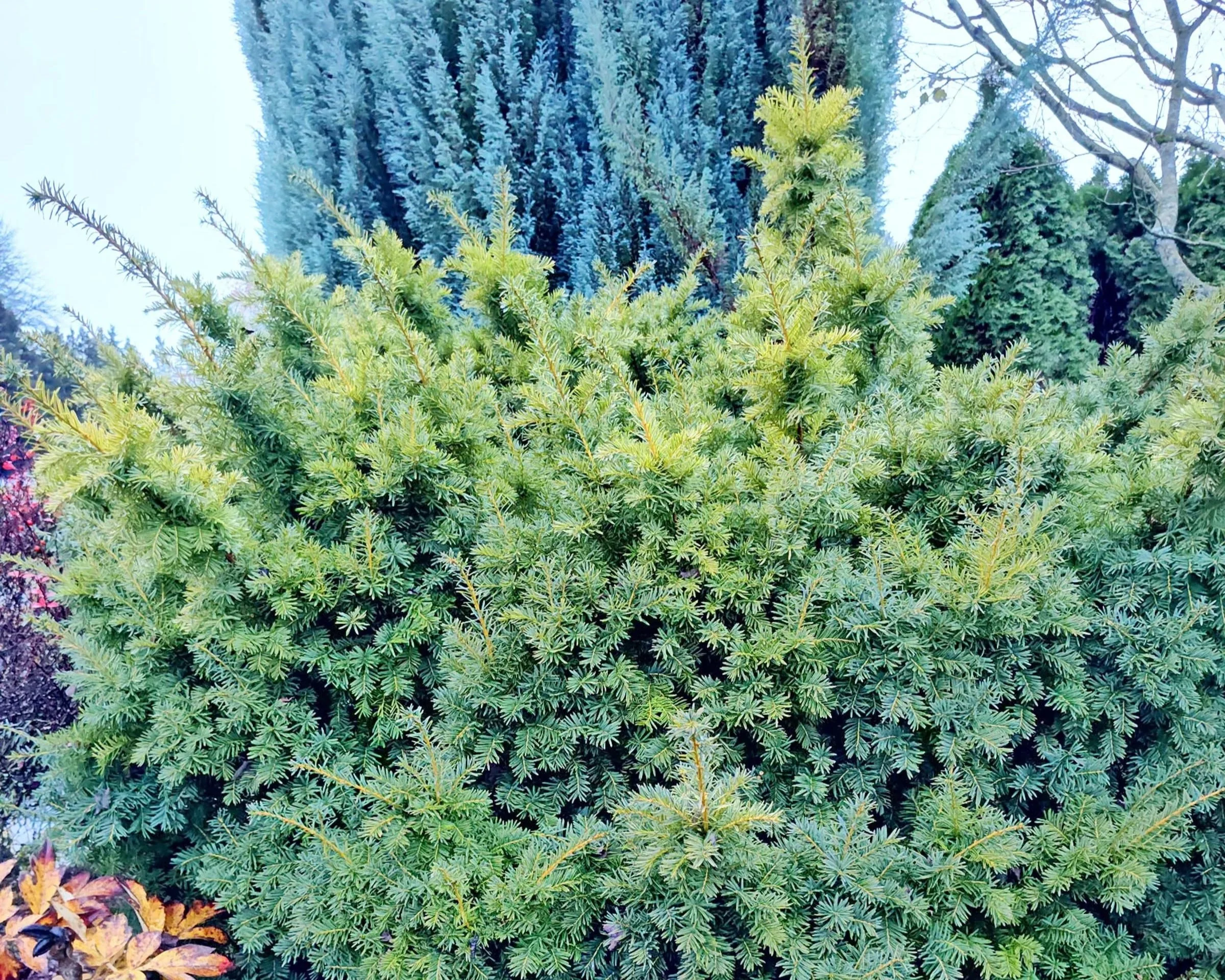 As with the blue varieties we talked about last week, there is a lot to choose from both large and small. From miniature little growers to weepers to tidy dwarfs, a bright and cheery garden gem can be found for almost any spot in the landscape. Here are a few I would ponder and, again like last week, some investigation and internet time will show you even more options and pictures.