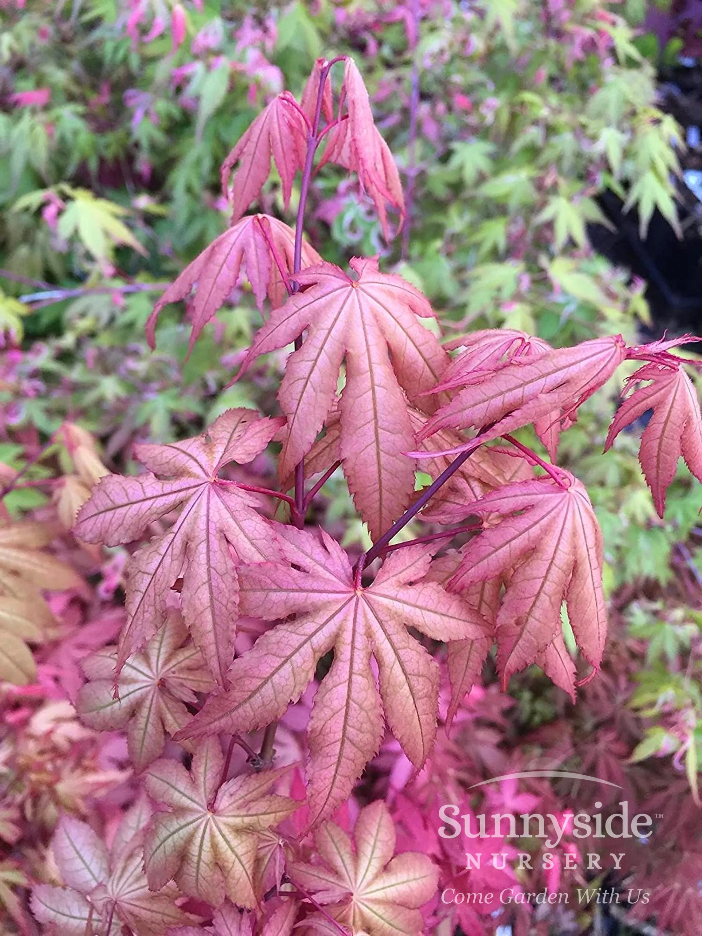 ‘Amaji shigure’: This outstanding variety pops with bright pinky-red spring foliage highlighted with deep purple veins. Color softens in summer to a lighter pink, cream and green, then turning in autumn to a brighter orangey-red color. Specimens typically reach about 12-feet tall and 10-feet wide in the garden over time.
