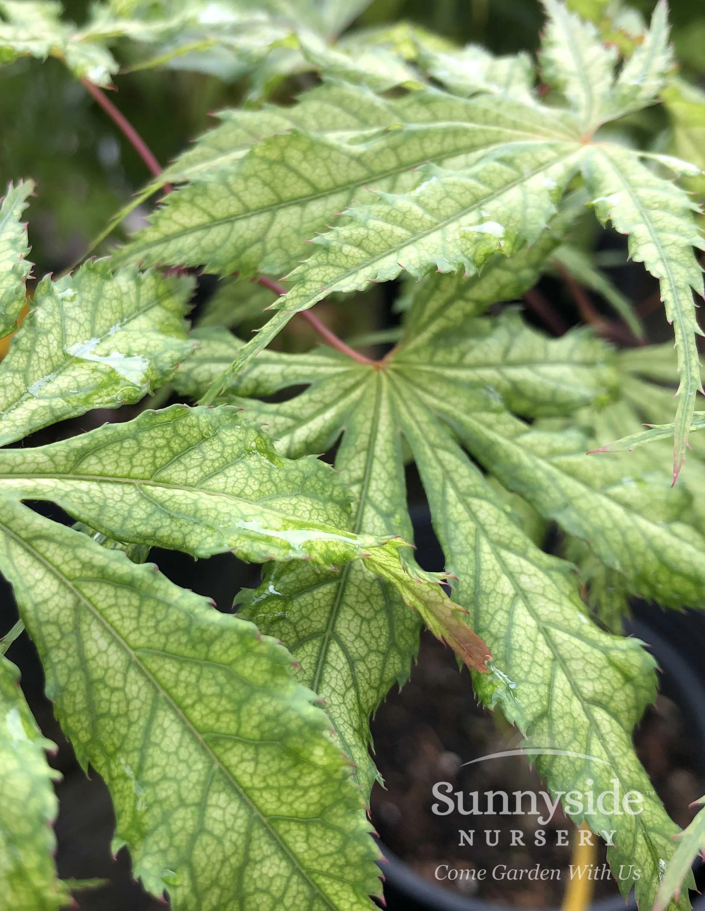 So what is “reticulation”? First, this is absolutely different than what many of us think of as typical variegation. We have all seen variegated forms of nearly every shrub, tree and perennial around. There are numerous worthy variegated Japanese maples as well, but think of variegation as more random. Not every leaf will ever have identical color, and even year to year the colors/amounts of variegation can vary substantially. Variegated forms of any plant may also revert back to their original form, an event I have witnessed on many plants in my own yard over the years. Reticulation, on the other hand, is a consistent trait that does not vary as much, meaning the same glorious color combinations are on every leaf, top to bottom, year after year.